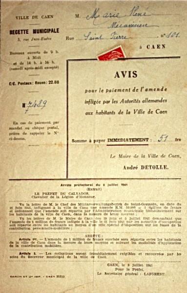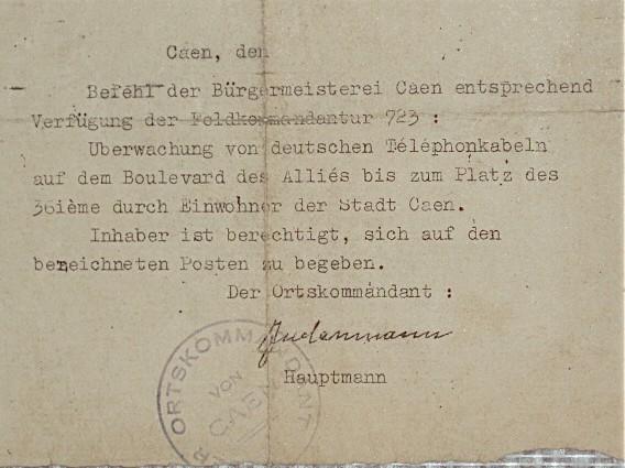 L'Hauptmann Schweikart, commandant l'Orstkommandantur 630 de Caen, annonce que 100 PV ont été dressés en une semaine pour infraction au camouflage des lumières.