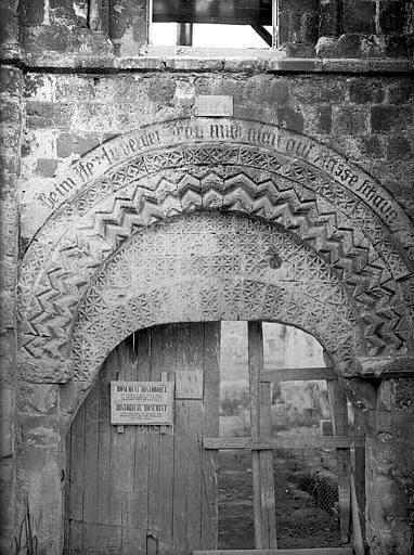 Source. Le portail sud de la salle de l'Echiquier du château, inscription allemande au-dessus du tympan. On peut déchiffrer : Beim Pferd wie bei den Frau muß man auf Rasse schaun. Que l’on peut traduire par : Chez les chevaux comme chez les femmes, on doit regarder la race. C’est une expression assez connue en Allemagne à l’humour de garnison, ce qui est le cas ! Il faut un peu d'explication: 1. La "race" dans ce sens n'a rien à voir avec des théories sur les races ou le racisme. On dit d'une femme qu'elle est "rassig" ou qu'elle a de la race ("sie hat Rasse") quand elle a du chic, est belle et a de classe. 2. "schaun", proprement écrit "schau'n" est une abréviation de "schauen" = regarder, voir. 3. Pour que ça rime, il faut dire "Beim Pferd wie bei den Frau'n muß man auf Rasse schaun'n" ou "Beim Pferd wie bei den Frauen muß man auf Rasse schauen" ou "Bei Pferden wie bei Frauen muß man auf Rasse schauen", parce que "schau'n" ne rime qu'avec le pluriel de "Frau" (merci à Ernst von Heydebrand). Avant. De nos jours.