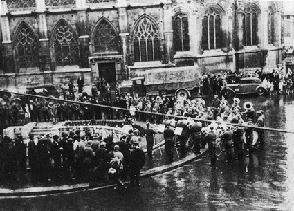 11 novembre: manifestation publique et spontanée de résistance à l'occupant, avec une cérémonie improvisée au Monument aux morts de 1914-18, place Foch ... devant l'hôtel Malherbe, siège de la Kommandantur. Des participants sont arrêtés et inscrits sur une liste de suspects à emprisonner en priorité comme otages. En 1940, plusieurs seront arrêtés à ce titre, en représailles d'attentats, et envoyés dans les camps de concentration nazis, dont beaucoup ne reviendront pas. (pas une ligne dans la presse locale, qui évoque en revanche la manifestation sur la tombe du Soldat Inconnu, le même jour à Paris)