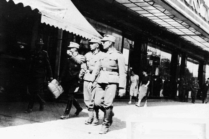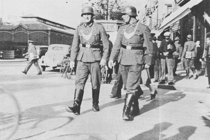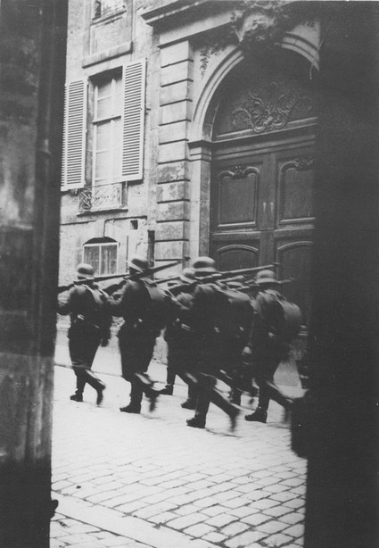 Source: Collection V. et A. Benhaïm, photo présentée page 18 de ce livre, défilé des troupes d'occupation juin 1940.