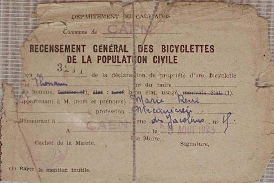 Le 29 août 1943, recensement du vélo Thomann de René Marie.